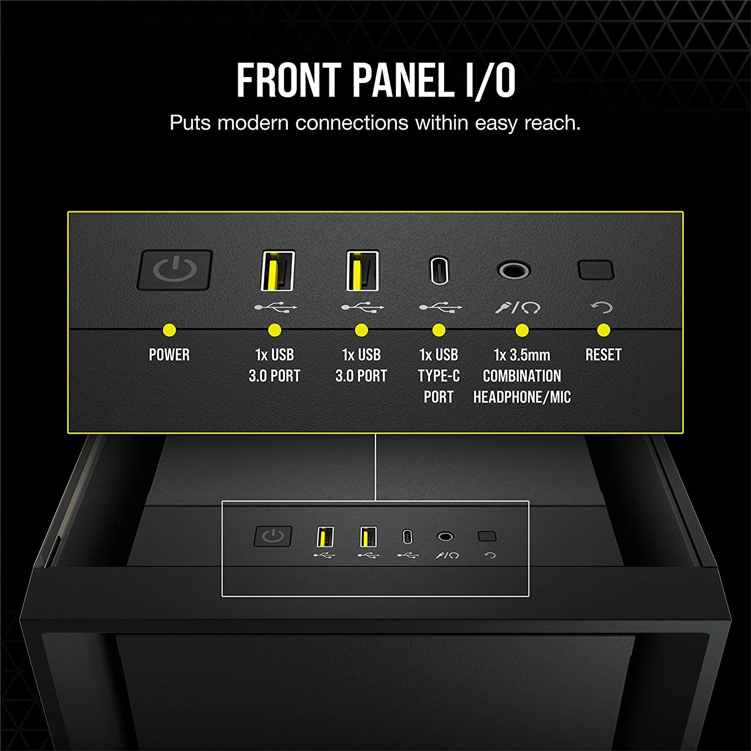 A minimalist solid steel front panel offers superb durability and sharp looks, with dedicated ventilation channels for ample airflow.